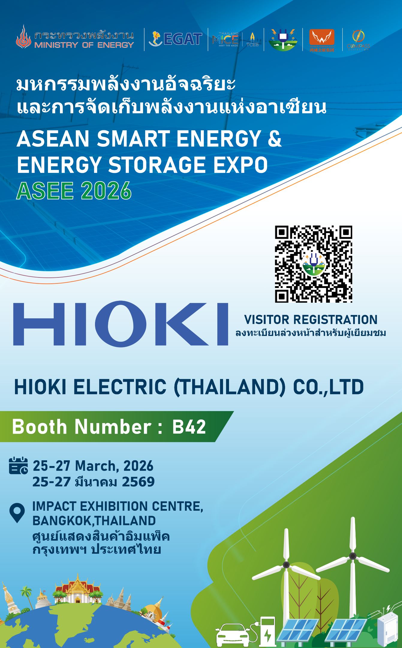 HIOKI ELECTRIC (THAILAND) CO., LTD. will showcase its latest power measurement and energy monitoring solutions at the ASEE-ASEAN Smart Energy & Energy Storage Expo , driving smarter and safer energy management across Southeast Asia.