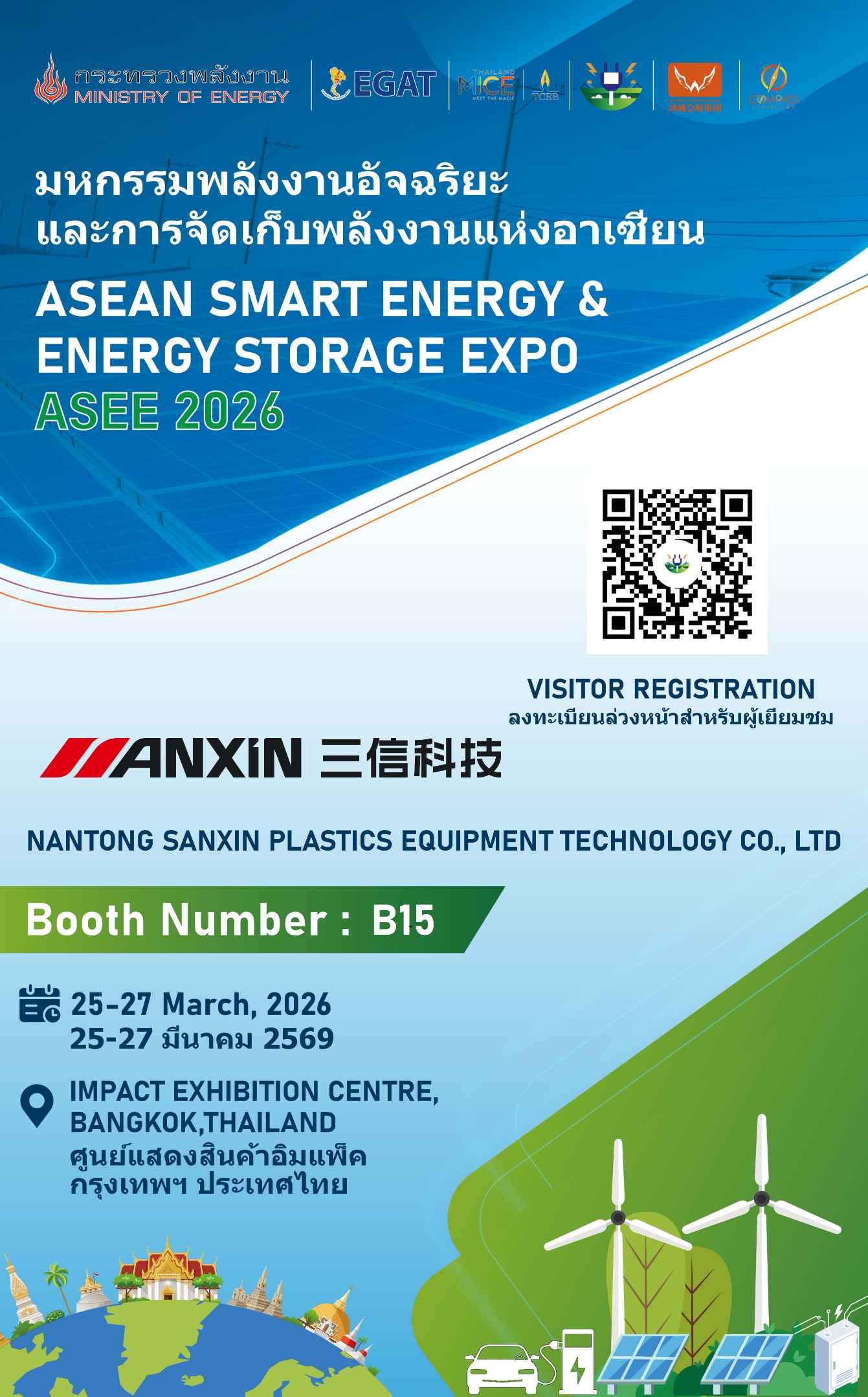 Nantong Sanxin Plastics Equipment Technology Co., Ltd. Invite you to participate in the ASEE – ASEAN Smart Energy & Energy Storage Expo 2026!